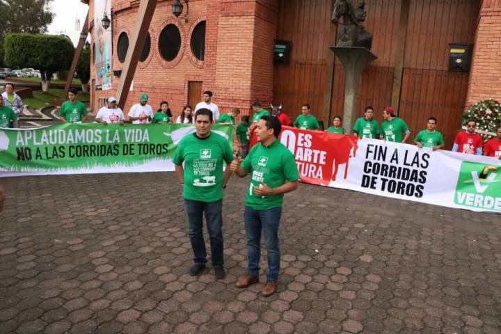Ciudadanos de Morelia y de otras localidades se concentraron esta tarde en las afueras del Palacio del Arte en una manifestación pacífica en contra de las corridas de toros; evento que estuvo coordinado por el Partido Verde Ecologista de México (PVEM) y que se realizó de forma simultánea en otras diez entidades del país.