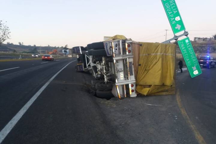 NOTICIAS 07/02/2021Tráiler cargado de triplay vuelca en la Morelia-SalamancaUn tráiler volcó en la carretera Morelia-Salamanca en este municipio de Tarímbaro, sin que por fortuna hubiera personas lesionadas, de acuerdo con la información obtenida por esta agencia de noticias. La emergencia fue atendida por unos paramédicos locales y por el personal del Batallón de Seguridad en Carreteras e Instalaciones de la Guardia Nacional (GN) en Michoacán.