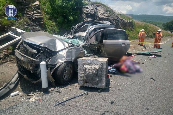 Una pareja falleció al quedar destrozada su camioneta luego de estrellarse contra un poste con una base de concreto de un señalamiento vial, de acuerdo con la información obtenida por esta agencia de noticias en la cobertura del lamentable suceso.