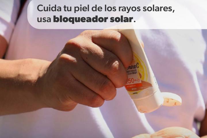 NOTICIAS 05/03/2024Usar bloqueador solar ayuda a prevenir quemaduras por el sol: SSMPara prevenir quemaduras por exposición prolongada al sol durante esta temporada de calor, la Secretaría de Salud de Michoacán (SSM) recomienda a la población usar bloqueador solar al salir a la calle o hacer actividades al aire libre.