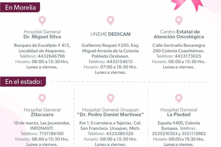 NOTICIAS 03/02/2024Febrero, mes de la Lucha contra el Cáncer y la mastografía gratuita En el mes de la Lucha contra el Cáncer, que se conmemora cada 4 de febrero, la Secretaría de Salud de Michoacán (SSM) invita a las mujeres a realizarse a tiempo su chequeo y acudir de manera anual por su mastografía, a la Unidad de Especialidades Médicas en Detección y Diagnóstico de Cáncer de Mama (Uneme Dedicam).