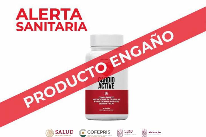 NOTICIAS 02/02/2024Alerta SSM a no consumir Cardio Active por ser riesgoso para la saludLa Secretaría de Salud de Michoacán (SSM) alerta a la población para no consumir Cardio Active, producto riesgoso para la salud, cuya fórmula contiene hierba de San Juan, tóxica y no autorizada en el país por la Comisión Federal contra Riesgos Sanitarios (Cofepris).