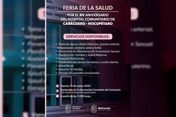 Además, el personal del hospital y de la Jurisdicción Sanitaria de Pátzcuaro, otorgará consultas sin costo, estudios de laboratorio, vacunas, mastografÃas, vasectomÃas, colocación de implantes a mujeres, asà como sal... Ver más...