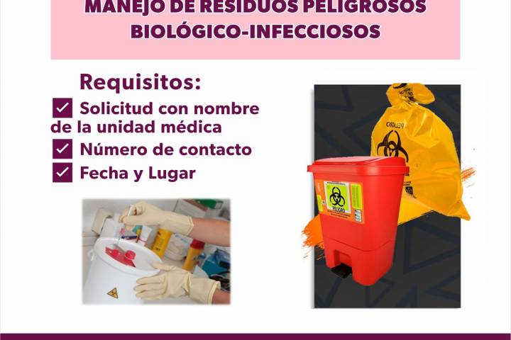 NOTICIAS 13/12/2023SSM anuncia curso sobre manejo de residuos peligrosos A fin de que clínicas y hospitales públicos y privados cumplan con la normatividad sanitaria, y recolecten adecuadamente los residuos peligrosos biológico infecciosos, la Secretaría de Salud de Michoacán (SSM) ofrece cursos sobre el manejo correcto a personal de centros médicos y unidades de salud.