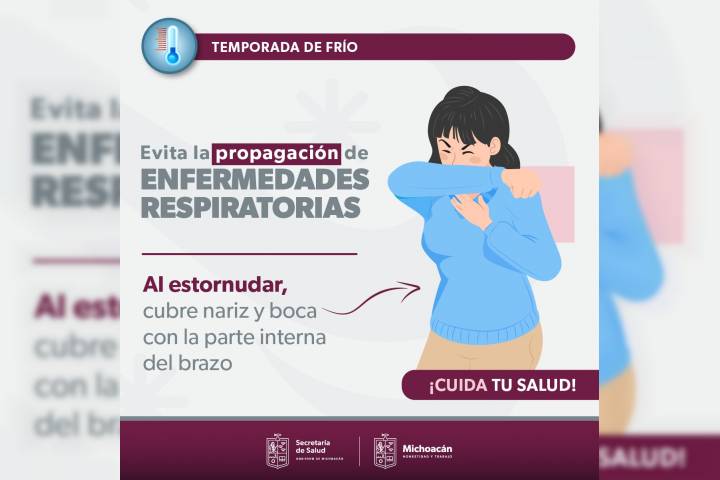 NOTICIAS 29/10/2023Ante bajas temperaturas, SSM refuerza acciones preventivasDerivado de las bajas temperaturas que empiezan a presentarse en la entidad, la Secretaría de Salud en Michoacán (SSM), refuerza las acciones de prevención y promoción en salud; así como la vigilancia epidemiológica, con el propósito de evitar incremento de enfermedades de las vías respiratorias en la población.