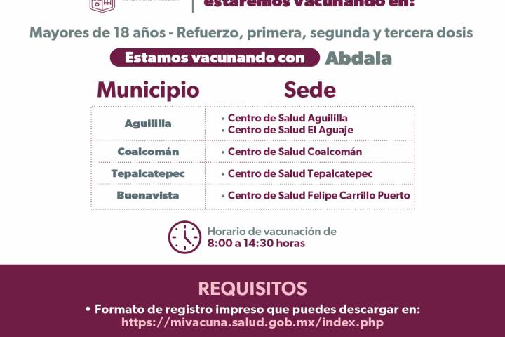 Durante octubre se estará inmunizando a la ciudadanía con el biológico Abdala, por lo que es importante, estar pendientes de fechas y sedes en la página oficial de Facebook de la institución.