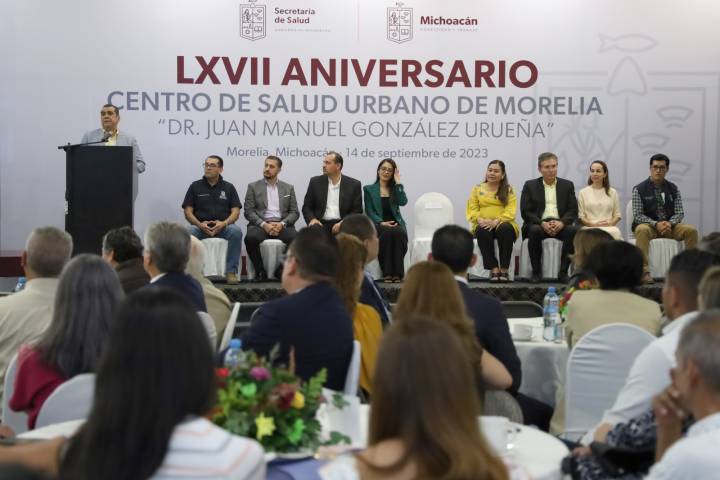 NOTICIAS 14/09/2023Cumple centro de salud de Morelia 67 años de servir a los michoacanosCon una productividad mensual de atención de 11 mil 500 pacientes, fue conmemorado el 67 aniversario de la fundación del Centro de Salud de Morelia "Dr. Juan Manuel González Urueña", con una ceremonia encabezada por el secretario de Salud de Michoacán, Elías Ibarra Torres, quien señaló que esta unidad brinda servicios integrales y gratuitos a la población sin seguridad social.