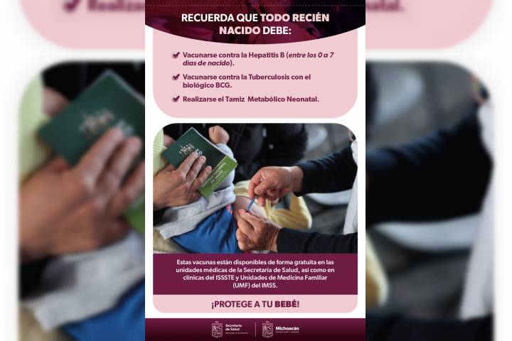 Estas vacunas se deben aplicar en el primer mes de nacido, pues ofrecen inmunidad antes de que los menores estén expuestos a enfermedades que podrían ser mortales.