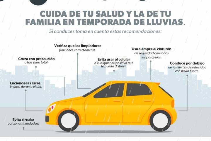 NOTICIAS 12/08/2023En lluvias, prevén accidentes viales con estas recomendaciones de la SSMEn esta temporada de lluvias es importante prevenir los accidentes viales, con la verificación del automóvil o motocicleta antes de viajar, y de manera periódica para circular en la ciudad.