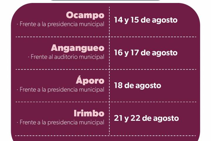 Es así que todas las mujeres de 40 a 69 años de edad, de los municipios de Ocampo, Angangueo, Áporo e Irimbo, pondrán solicitar el beneficio en las unidades móviles que recorrerán las principales plazas públicas.