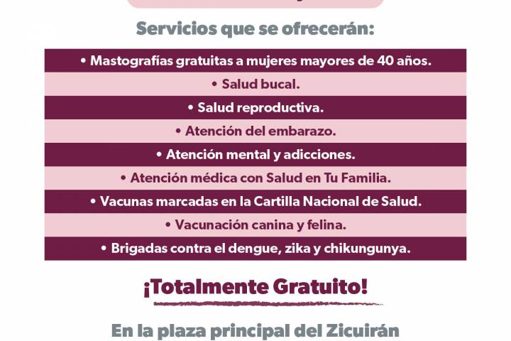 Consultas médicas, mastografías, estudios de laboratorio, vacunación, y atención a la salud bucal y metal, son algunos de los servicios que se brindarán durante este evento, que iniciará a partir de las 9:0... Ver más...