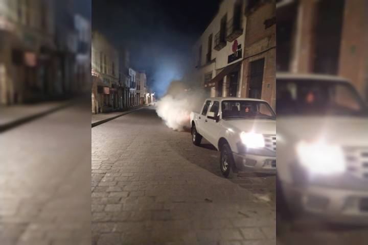 Para ello, se desplegó una camioneta y dos elementos del área de vectores, asà como una termonebulizadora para la nebulización de 88 hectáreas y 99 manzanas del Centro Histórico en beneficio de 4 mil 190 personas.