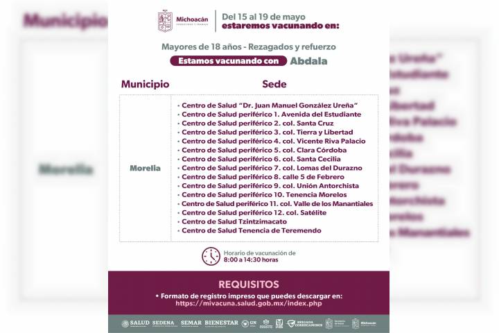 Se instalarán sedes de inmunización en 99 municipios del estado donde se aplicará el biológico Abdala, de 8:00 a 15:00 horas. Es e... Ver más...