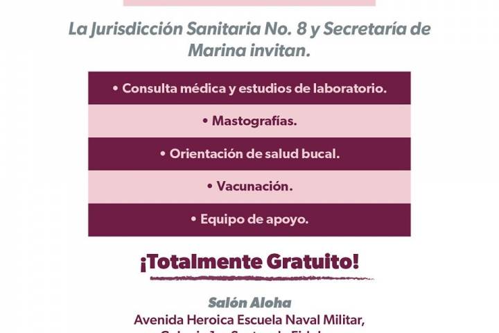 Consultas médicas, mastografías, estudios de laboratorio, vacunación y atención a la salud bucal, son algunos de los servicios que se brindarán de forma gratuita durante este evento, que iniciará a las 10:00 horas.