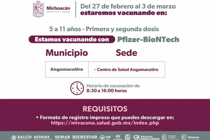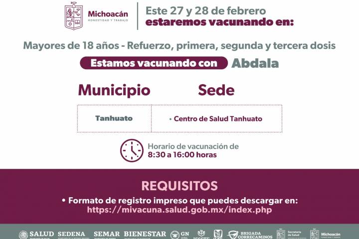 La Secretaría de Salud de Michoacán (SSM) precisó que en esta jornada de inmunización participan el Instituto Mexicano del Seguro Social (IMSS), el Instituto de Seguridad y Servicios Sociales de los Trabajadores del Estado (ISSSTE) y la Secretaría de Defensa Nacional (Sedena).