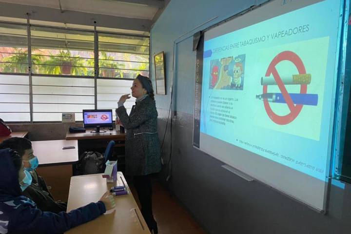 NOTICIAS 20/01/2023Coepris difunde en escuelas información del daño que causan los vapeadores En aras de inhibir el consumo de vapeadores a temprana edad, la SecretarÃa de Salud de Michoacán (SSM), a través de la Comisión Estatal para la Protección contra Riesgos Sanitarios (Coepris), difunde en los niños información sobre los daños que generan estos productos electrónicos, como parte de las acciones de protección a la población.