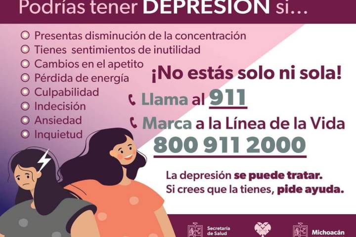 NOTICIAS 13/01/2023A través del 911, SSM brinda atención a personas con ansiedad y depresión En el DÃa Mundial de la Lucha contra la Depresión, la SecretarÃa de Salud de Michoacán (SSM) recuerda a la población que la institución brinda atención gratuita a la salud mental las 24 horas del dÃa, en la lÃnea telefónica 911.