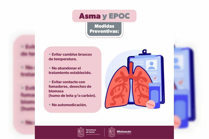 NOTICIAS 09/01/2023Llama SSM a pacientes con asma y EPOC a protegerse de bajas temperaturasLa Secretaría de Salud de Michoacán (SSM) exhorta a pacientes con asma y Enfermedad Pulmonar Obstructiva Crónica (EPOC) a no bajar la guardia y proteger su salud de las bajas temperaturas durante la temporada invernal.