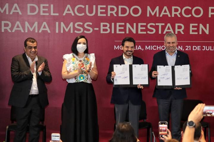 NOTICIAS 22/07/2022IMSS-Bienestar reforzará servicios de salud en Michoacán: Elías IbarraCon la firma del Acuerdo Marco para la Ampliación del Programa IMSS-Bienestar, más de 3 millones 300 mil michoacanos que hoy reciben atención médica gratuita a través de los Servicios de Salud de Michoacán y el IMSS-Bienestar, podrán acceder a una mayor cantidad de servicios médicos y de especialidades, a un incremento en el catálogo de medicinas y a una mejor infraestructura hospitalaria.