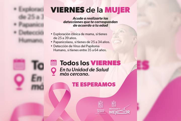 "Viernes de la Mujer" estará disponible en los centros de salud ubicados en los municipios de Morelia, Álvaro Obregón, Copándaro, Cuitzeo, Charo, Chucándiro, Huandacareo, Huaniqueo, Indaparapeo, Maravatío, Querén... Ver más...