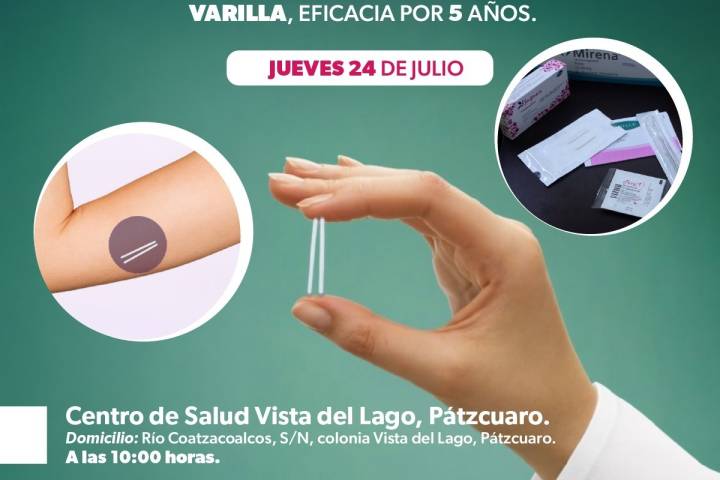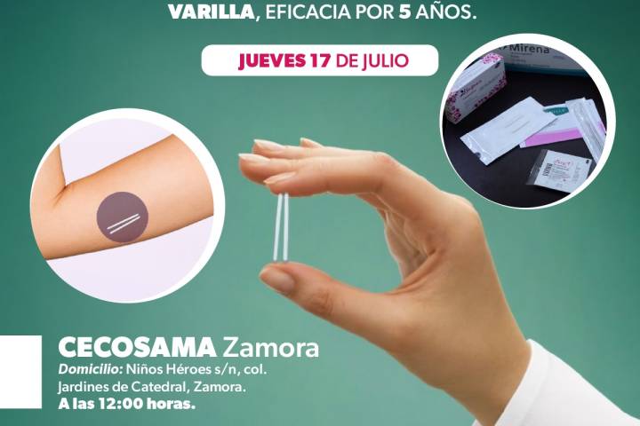 NOTICIAS 16/07/2025SSM ofrecerá implantes anticonceptivos gratuitos en Zamora Comprometidos con la salud sexual y reproductiva de las mujeres michoacanas, la SecretarÃa de Salud de Michoacán (SSM), llevará a cabo una jornada intensiva de aplicación de implantes anticonceptivos de doble varilla en el municipio de Zamora, una opción segura y eficaz con duración de hasta cinco años.