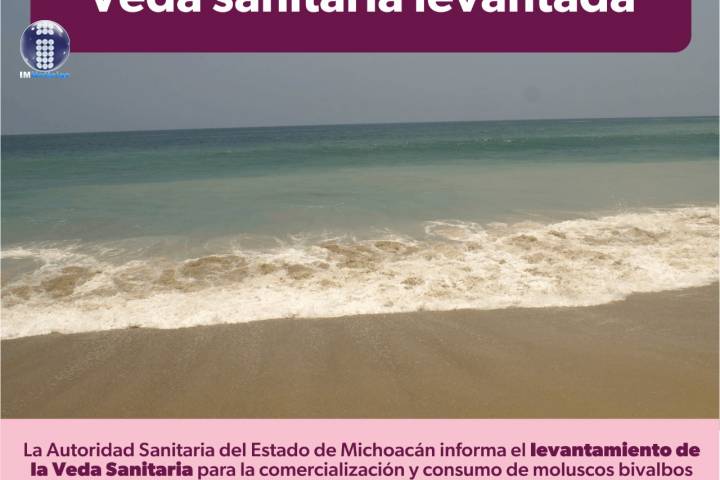 NOTICIAS 24/05/2022SSM levanta veda en Caleta de Campos por Marea RojaLa Secretaría de Salud de Michoacán (SSM), a través de la Comisión Estatal para la Protección contra Riesgos Sanitarios (Coepris) informa a la población que se levanta la Veda Sanitaria para la comercialización y consumo de moluscos bivalvos cosechados en Caleta de Campos, municipio de Lázaro Cárdenas.