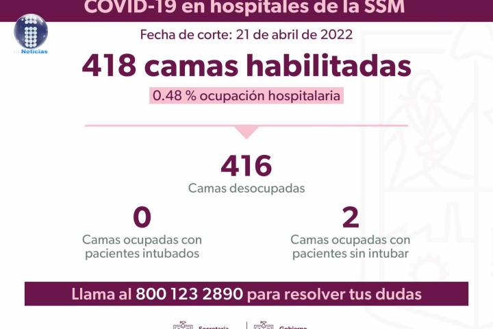 NOTICIAS 23/04/2022Mantiene Michoacán baja ocupación hospitalaria por Covid-19 Las acciones de contención para mitigar la pandemia, los operativos sanitarios a establecimientos, la publicación de decretos, así como el avance del Plan Nacional de Vacunación, han permitido que Michoacán se mantenga a la baja en cuanto a ocupación hospitalaria, pues de las 676 camas disponibles para la atención de pacientes con COVID-19, siete de ellas se encuentran ocupadas por pacientes con Infecciones Respiratorias Agudas Graves (IR... Ver más...