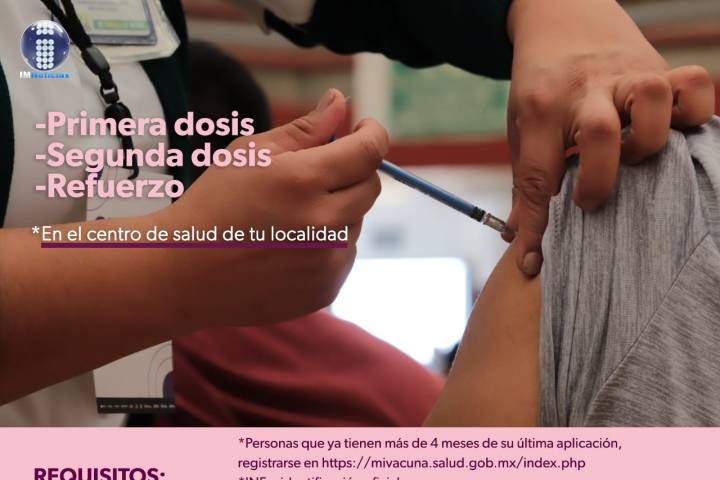 NOTICIAS 14/04/2022Centro de salud de Morelia vacunará todo abril contra COVID-19 A partir de este miércoles 13 de abril y hasta el sábado 30, el Centro de Salud Urbano de Morelia "Dr. Manuel González Urueña" vacunará contra el COVID-19 a todos los rezagados, mayores de 18 años que requieran de la primera y segunda dosis, así como del refuerzo.