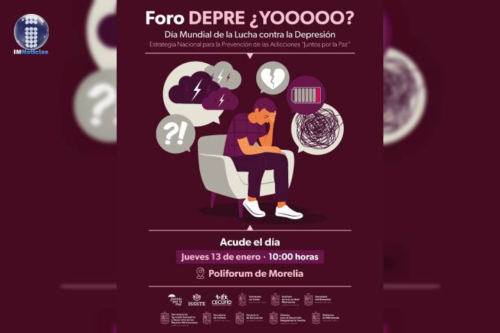 NOTICIAS 08/01/2022Preparan Foro por el Día Mundial de la Lucha contra la DepresiónEn el marco de la Estrategia Nacional para la Prevención de las Adicciones "Juntos por la Paz", se llevará a cabo el Foro DEPRE ¿YOOOOO?, Día Mundial de la Lucha contra la Depresión, dirigido a jóvenes, líderes sociales y medios de comunicación.