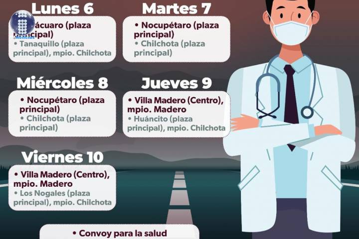 NOTICIAS 05/12/2021Atiende SSM salud de comunidades a través de los ConvoyesLa SecretarÃa de Salud de Michoacán (SSM), informa a la población sobre los lugares en los que se encontrarán los Convoyes de Salud y de Pueblos IndÃgenas, con los que se otorgan servicios gratuitos, del 6 al 10 de diciembre.