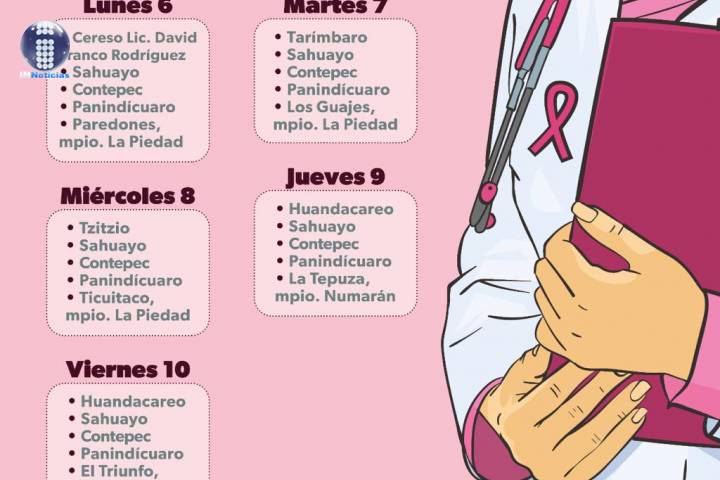 Los convoyes de mastografÃa brindarán servicio gratuito a mujeres de 40 a 69 años de edad, en el Cereso "Lic. David Franco RodrÃguez", Sahuayo, Contepec, PanindÃcuaro, La Piedad, TarÃmbaro, Tzitzio, Huandac... Ver más...