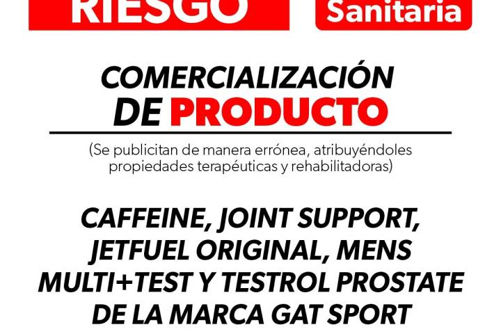 NOTICIAS 11/03/2026Alerta Cofepris por comercialización de productos de la marca GAT SPORTLa Comisión Federal para la Protección contra Riesgos Sanitarios (Cofepris), a través de la Secretaría de Salud de Michoacán (SSM), informa a la población sobre la alerta sanitaria relacionada con la comercialización de diversos productos de la marca GAT SPORT, los cuales se promocionan como suplementos alimenticios y se venden principalmente a través de plataformas de comercio electrónico, sitios web y aplicaciones móviles.