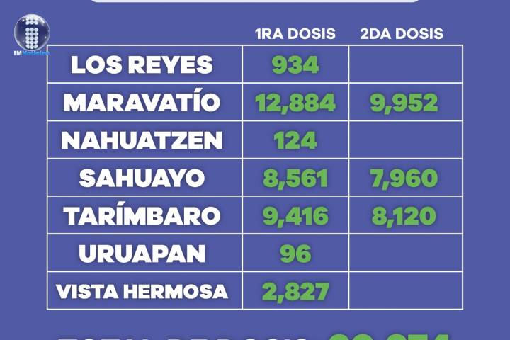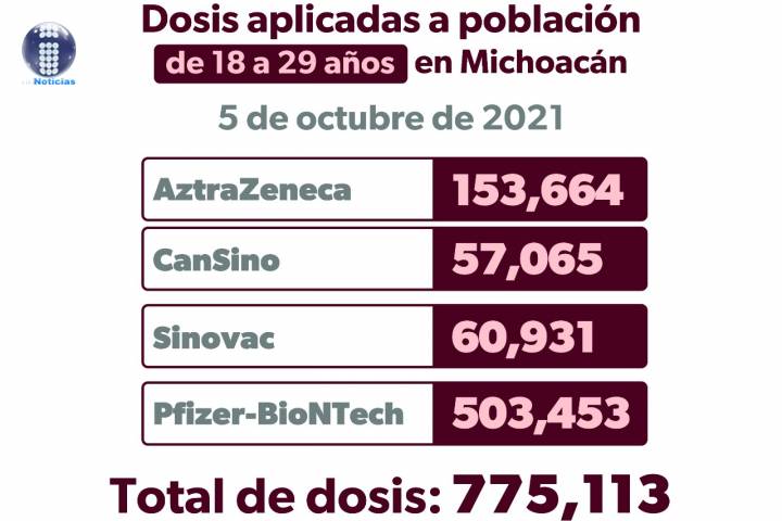 NOTICIAS 28/09/2021Activos, 7 puestos de vacunación anti COVID-19 para jóvenes en 5 municipiosEn Michoacán se han aplicado 574 mil 323 dosis de vacuna anti COVID-19, en beneficio de la población de 18 a 29 años. Actualmente se mantienen activos siete puestos de vacunación distribuidos en cinco localidades.