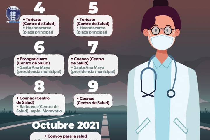 El Convoy de la Salud y la unidad móvil para pueblos indígenas se instalará en los centros de salud de Turicato este 4 y 5 de octubre; mientras que en Erongarícuaro estará el día 6 y en Coeneo del 7 al 8.