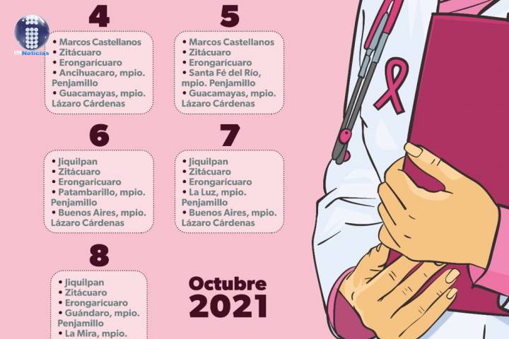 NOTICIAS 03/10/2021Unidades móviles de mastografía recorrerán comunidades de difícil accesoEn el marco del mes de la lucha y concientización contra el Cáncer de mama, la Secretaría de Salud de Michoacán (SSM) desplegará del 4 al 8 de octubre sus 5 unidades móviles en seis municipios de comunidades indígenas y de difícil acceso para reforzar acciones que permitan la detección y diagnóstico oportuno de este padecimiento.