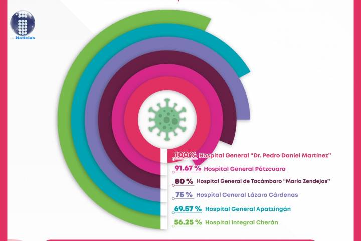 Las áreas COVID-19 de las unidades médicas de Pátzcuaro (91.67%), Tacámbaro (80%) y Lázaro Cárdenas (75%), se encuentran cerca de llegar a su máxima capacidad, seguidas de Apatzingán (69.57%) y (Cherán 56.25%).