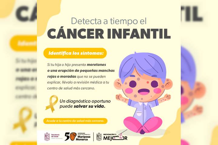 NOTICIAS 07/06/2025Detección temprana del cáncer infantil aumenta sobrevida a pacientes: SSMUn diagnóstico temprano del cáncer infantil da a los pacientes una supervivencia del 80 por ciento, por ello, la Secretaría de Salud de Michoacán (SSM) invita a madres y padres de familia detectar signos de alarma.