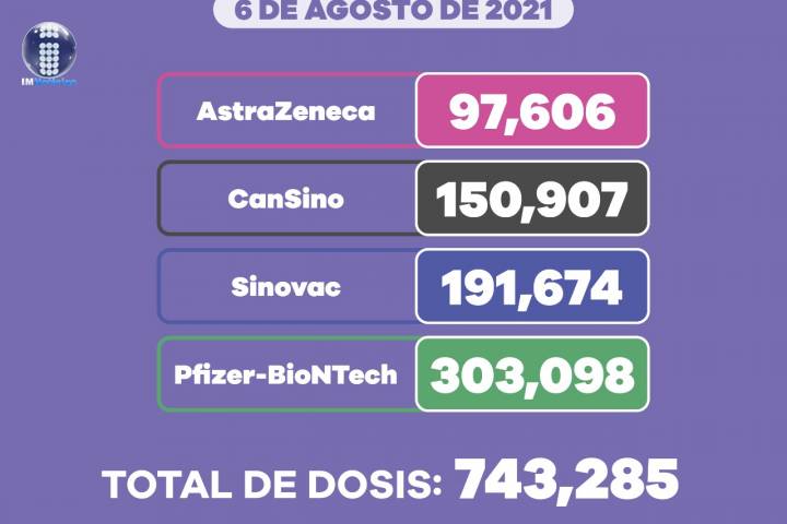 NOTICIAS 06/08/2021Aplicadas, un millón 801 mil 146 dosis de vacuna COVID-19 a mayores de 40 años