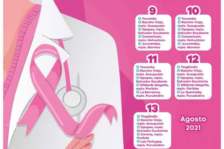 NOTICIAS 08/08/2021Activos mastógrafos móviles en comunidades La Secretaría de Salud Michoacán (SSM), mantiene activos los mastógrafos móviles, para detectar de manera oportuna el cáncer de mama.