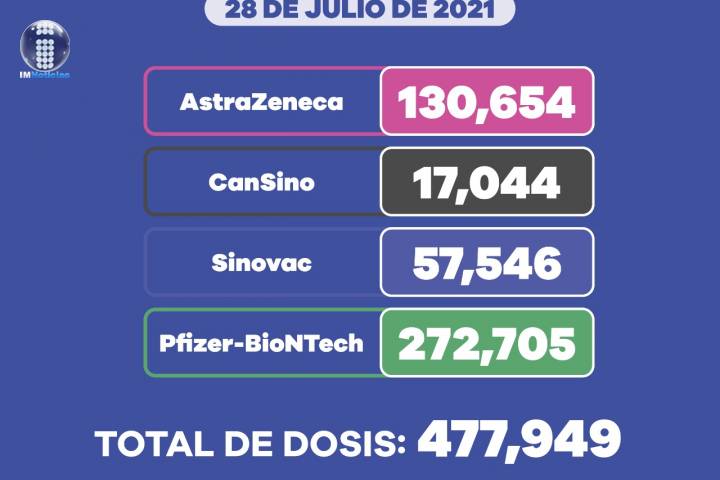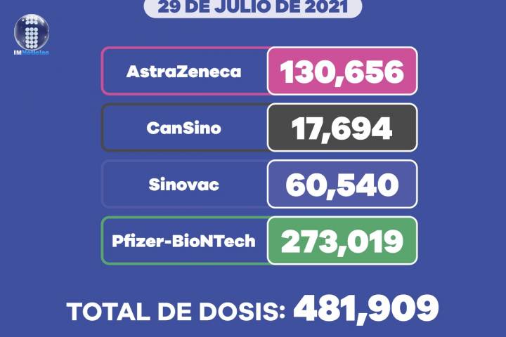 Del biológico aplicado, 130 mil 656 corresponde a AstraZeneca, 17 mil 694 a CanSino, 273 mil 19 a Pfizer y 60 mil 540 a Sinovac. Este sector de la población registra 13 mil 930 casos confirmados y 611 defunciones.