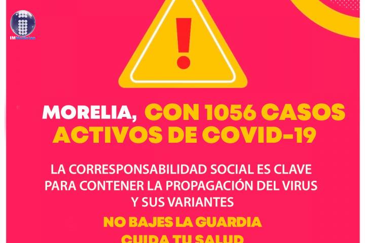 NOTICIAS 30/07/2021Morelia, de con más de mil casos activos de COVID-19 Con mil 56 casos activos, Morelia es el epicentro de la tercera ola de COVID-19. Acumula 17 mil 508 confirmados, de los cuales mil 668 han perdido la batalla contra la enfermedad.