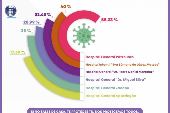 La otras cinco unidades médicas con alta demanda son: Hospital Infantil "Eva Sámano de López Mateos" (40%), Uruapan "Pedro Daniel Martínez" (32.43%), "Dr. Miguel Silva" (28. 99%), Zacapu (25%) y Apatzing... Ver más...