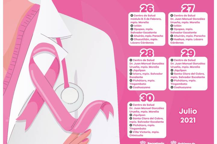 NOTICIAS 25/07/2021SSM despliega unidades móviles de mastografías en 10 municipios Como parte de las acciones para la detección oportuna del cáncer de mama, la Secretaría de Salud de Michoacán (SSM), acerca los servicios de salud gratuitos a mujeres a través de las unidades móviles de mastografía.