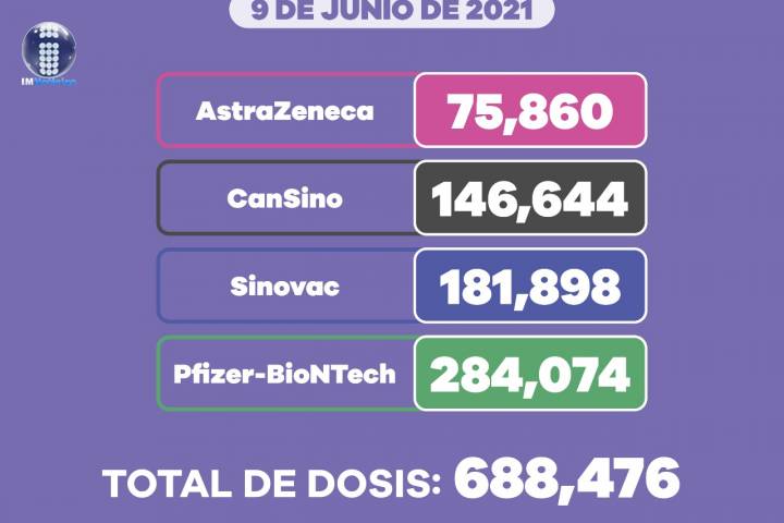 Del total de vacunas aplicadas, 125 mil 536 fueron de la farmacéutica AstraZeneca, 29 mil 404 de CanSino, 4 mil 986 Sinovac y 142 mil 690 de Pfizer.