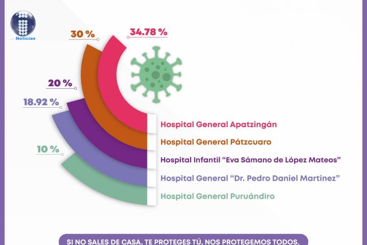En las últimas semanas el que registra mayor demanda es el Hospital General de Apatzingán, que actualmente se encuentra al 24.78 por ciento de su capacidad de atención a pacientes COVID-19.