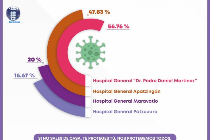 En las últimas tres semanas el que registra mayor demanda es el "Pedro Daniel Martínez" de Uruapan, que actualmente se encuentra al 56.76 por ciento de su capacidad de atención a pacientes COVID-19.