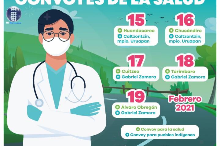 NOTICIAS 14/02/2021Convoyes de la Salud y para Pueblos Indígenas, desplegados en 7 municipios La Secretaría de Salud de Michoacán (SSM), informa a la población sobre los lugares en los que se encontrarán los Convoyes de Salud y para Pueblos Indígenas otorgando servicio gratuito, del 15 al 19 de febrero.