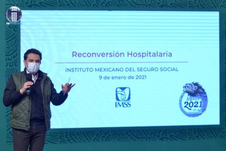 NOTICIAS 10/01/2021Realiza IMSS reconversión hospitalaria en ocho entidades ante el aumento de contagios de COVID-19El Instituto Mexicano del Seguro Social (IMSS) ha implementado una estrategia de reconversión hospitalaria en ocho entidades ante el aumento de contagios por COVID-19, lo cual le permitirá crecer en un 39 por ciento para alcanzar hacia finales de enero 6 mil 116 camas adicionales para atención de pacientes en los estados de Querétaro, Hidalgo, Puebla, Morelos, Guanajuato, Nuevo León, Jalisco y Michoacán.