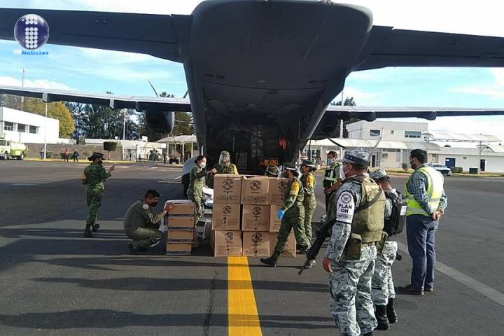 Las vacunas fueron descargadas por el personal de la Secretaría de la Defensa Nacional (... Ver más...