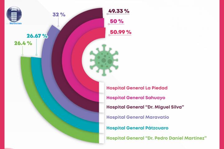 Dichas unidades médicas se encuentran al 50.99, 50 y 49.33 por ciento de su capacidad resolutiva, respectivamente; les siguen Maravatío (32%), Pátzcuaro (26.67%) y Uruapan (26.4%).